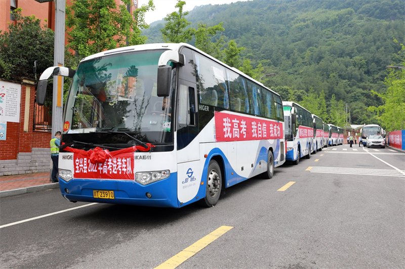 受6月1日芦山地震影响,宝兴县暂不具备高考条件,天全县成为宝兴县2022高考平移地点。6月9日下午,蜀通公司调集13辆大巴车将在天全顺利完成高考的宝兴考生,安全顺利送回宝兴。