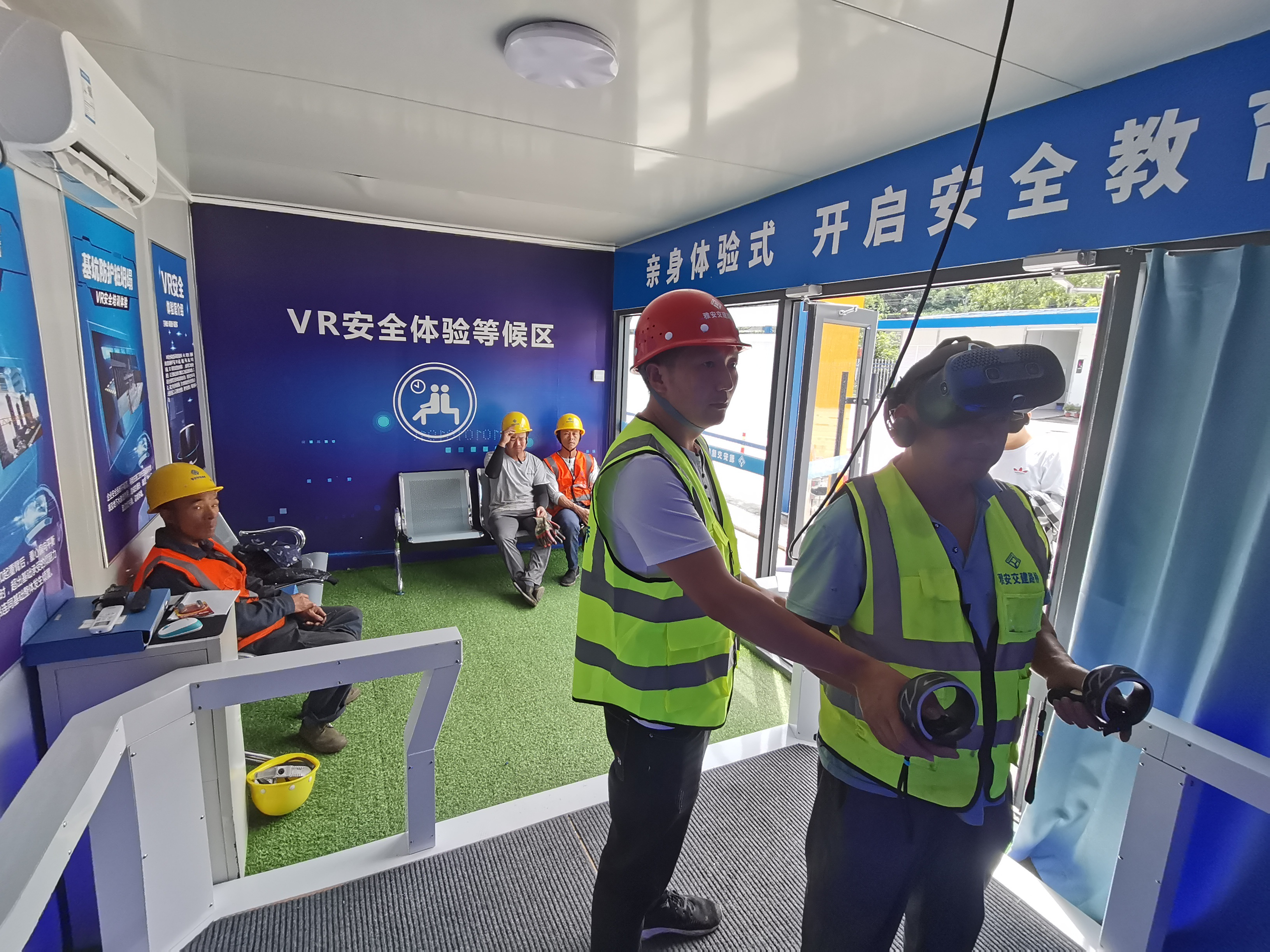 针对各在建项目劳务施工人员占大多数且安全意识薄弱、自我保护意识不足实际,路桥公司结合召开“安全生产月”系列活动,分批次组织各在建项目作业人员进行安全VR体验培训,利用VR技术打造1:1的虚拟培训场景,将抽象的理论知识变得直观形象,受训者以第一视角“亲历”高空作业、高空塔吊、机械操作等危险场景,带来高度真实感的沉浸式体验,切实让工人在VR培训中顺利获得视觉、听觉、触觉反馈,形成强烈的心理震慑作用,让现场施工作业人员最大限度增强安全防范意识。