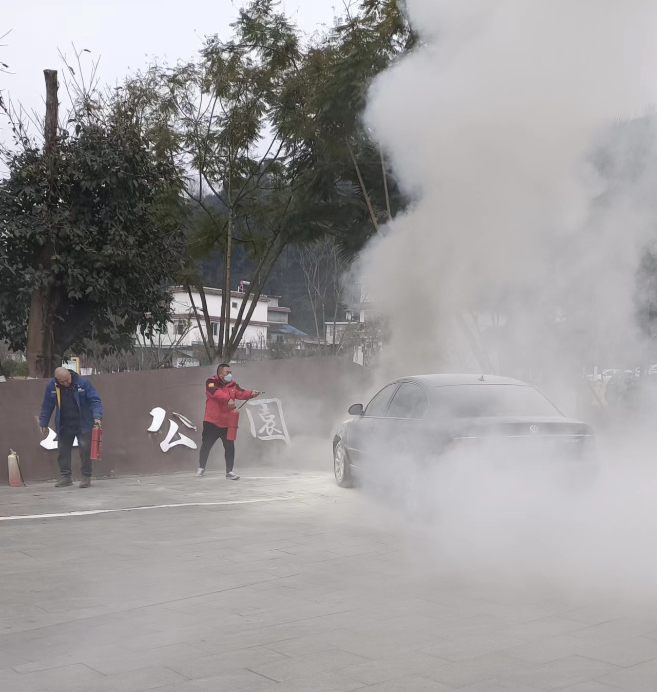 1月19日下午4点,一辆停放在名山区东龙山公交车发班点附近的黑色轿车,突然发生自燃,冒出浓浓白烟。我司正在发班点待班的17路、20路公交驾驶员王绍兴、李彪、吴庭超三人见状,来不及考虑自身安危,迅速拎起公交车内配置的灭火器,快速冲向起火点旁,熟练地打开灭火器上安全栓,看清风向,精准喷射着火点,控制火势。同时,公交车调度员迅速拨打了消防报警电话。