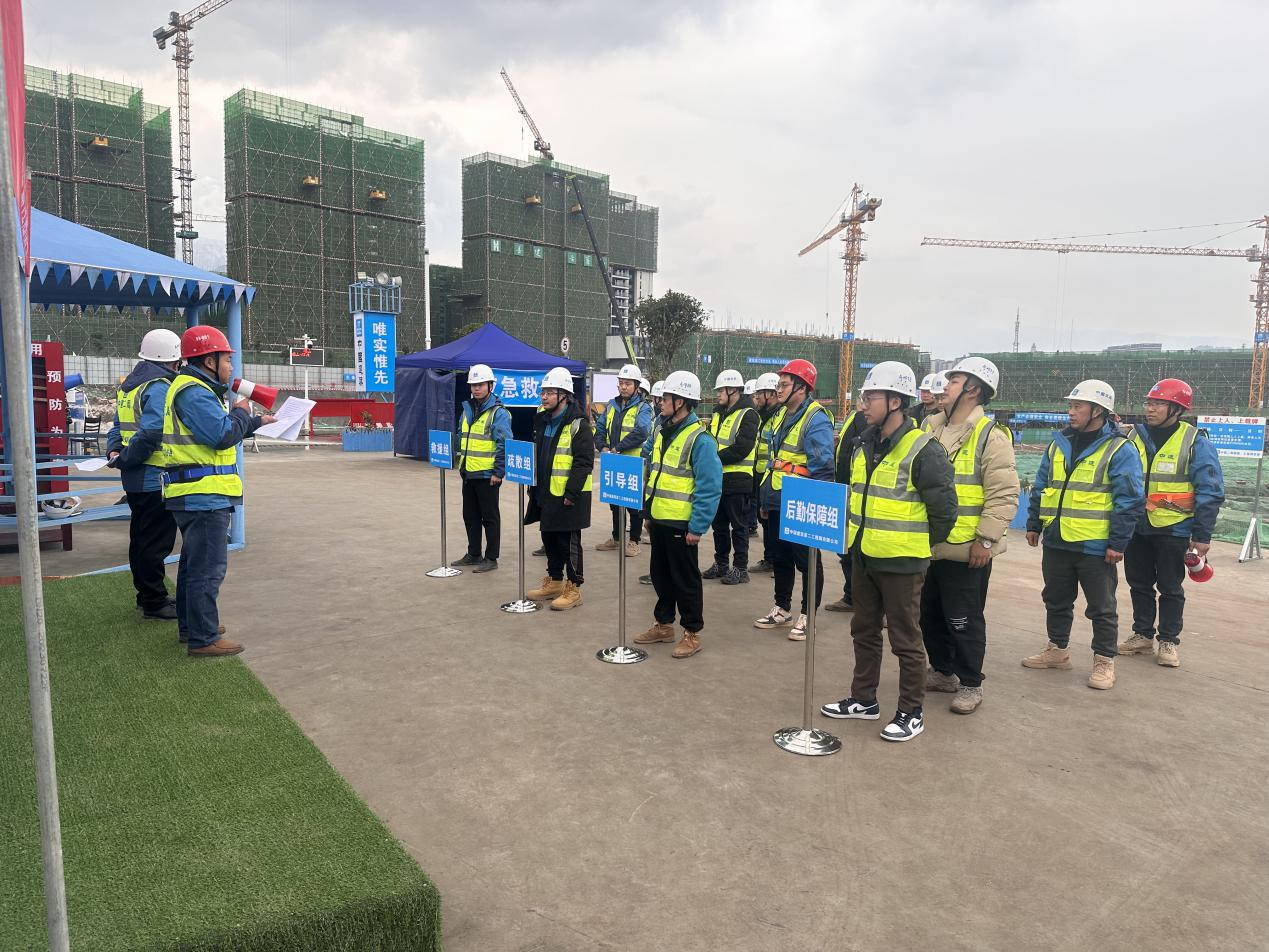 本次演练采取“实战”的方式进行,涵盖从地震发生、人员疏散、排查清点、转移安置、抢救伤员等科目。实景模拟了项目所在地突发地震,受地震影响,项目施工设施不同程度受损工人被困。