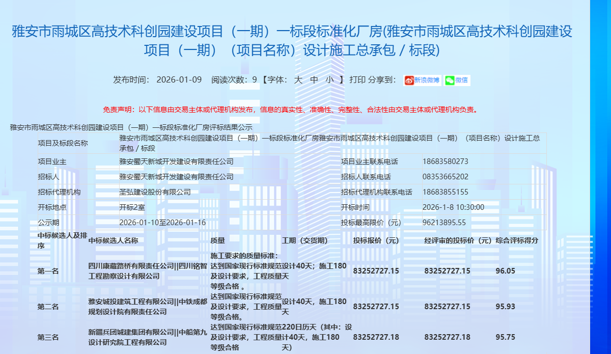 蓄势突破,奋楫开新。康藏路桥公司成功斩获雅安市雨城区高技术科创园建设项目(一期)一标段标准化厂房项目,中标金额8325.27万元,为公司2026年开展强势开篇,迎来马年“开门红”。
