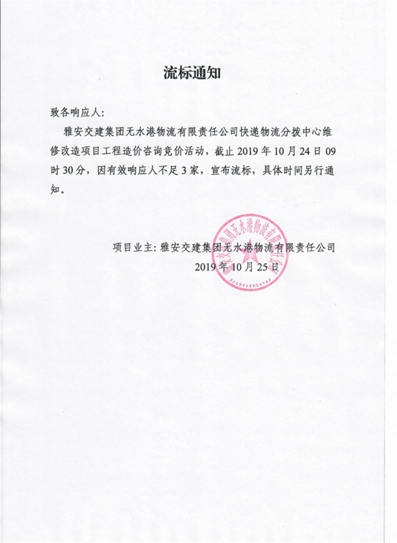 大红鹰dhy(中国)集团无水港物流有限责任公司快递物流分拨中心维修改造项目工程造价咨询竞价流标通知