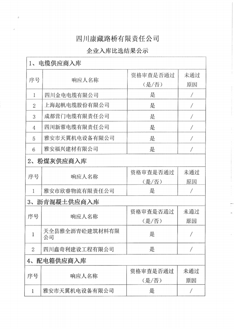四川康藏路桥有限责任公司企业入库比选结果公示
