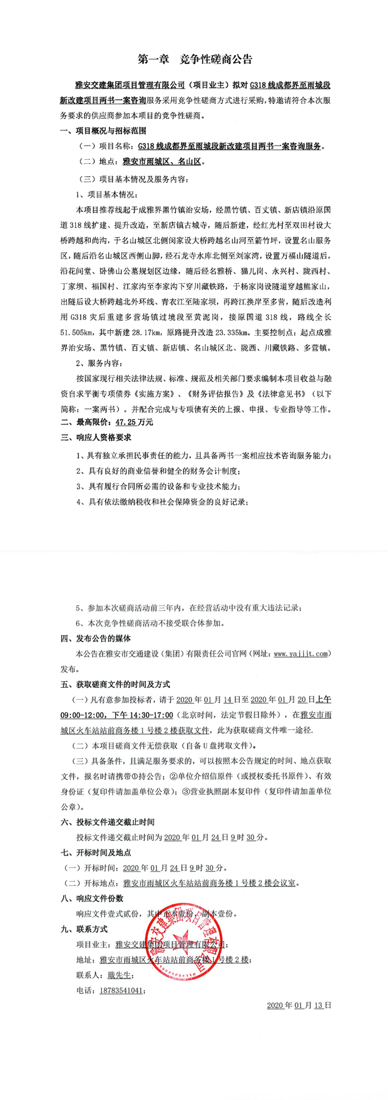大红鹰dhy(中国)集团项目管理有限公司G318线成都界至雨城段新改建项目两书一案咨询服务