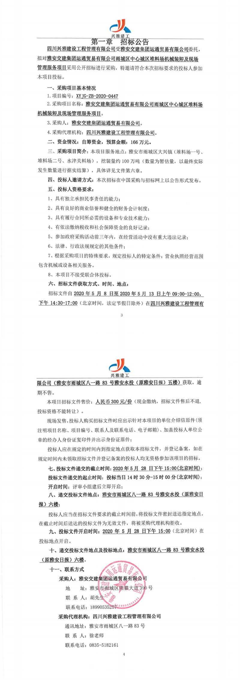 大红鹰dhy(中国)集团运通贸易有限公司雨城区中心城区堆料场机械装卸及现场管理服务项目招标公告
