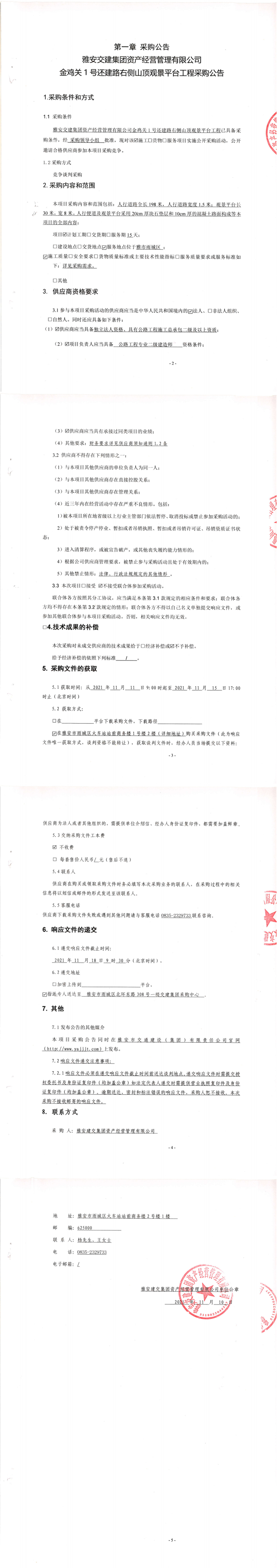 大红鹰dhy(中国)集团资产经营管理有限公司金鸡关1号还建路右侧山顶观景平台工程采购公告