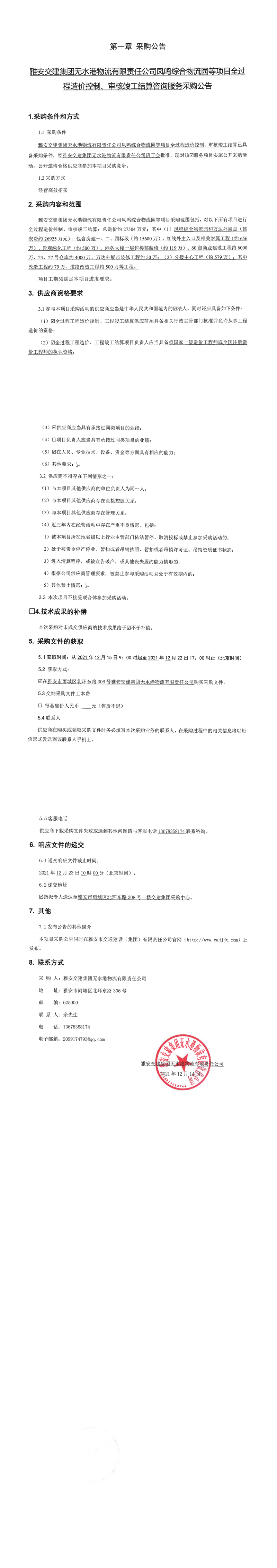 大红鹰dhy(中国)集团无水港物流有限责任公司凤鸣综合物流等项目全过程造价控制、审核竣工结算咨询服务采购公告