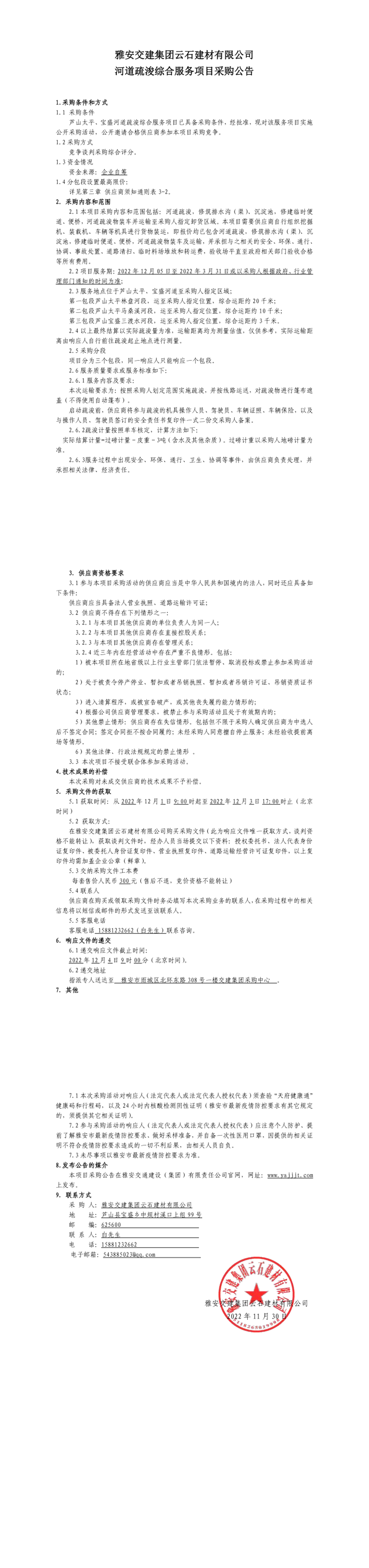 大红鹰dhy(中国)集团云石建材有限公司河道疏浚综合服务项目采购公告