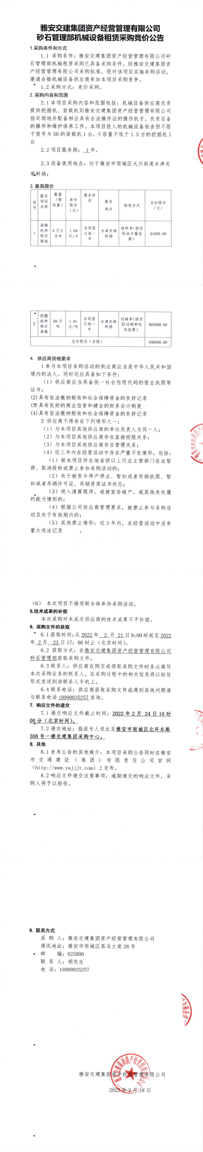 大红鹰dhy(中国)集团资产经营管理有限公司砂石管理部机械设备租赁采购竞价公告