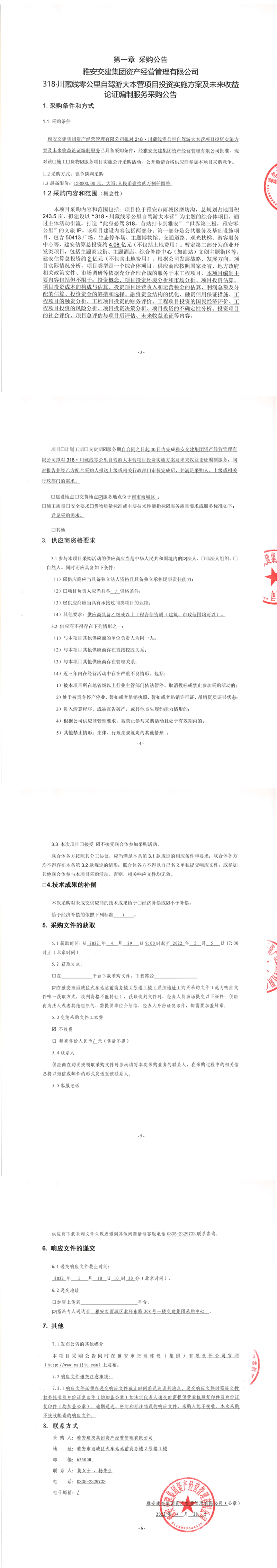 大红鹰dhy(中国)集团资产经营管理有限公司318·川藏线零公里自驾游大本营项目投资实施方案及未来收益论证编制服务采购公告