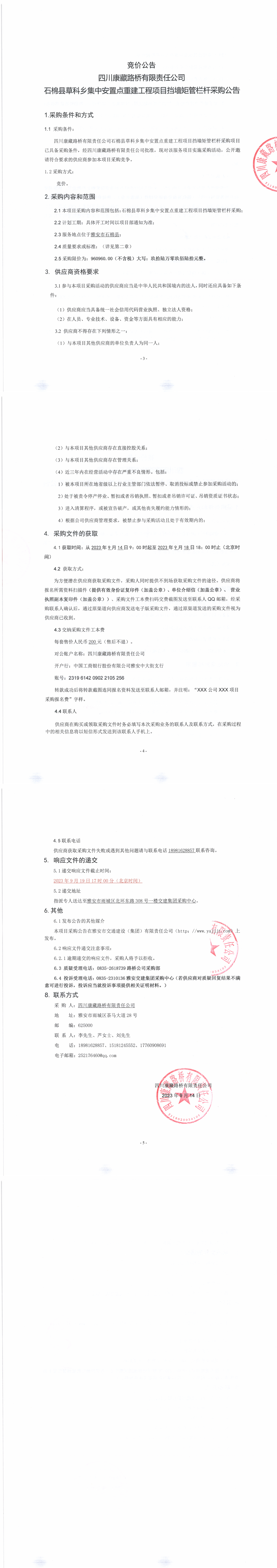 四川康藏路桥有限责任公司石棉县草科乡集中安置点重建工程项目挡墙矩管栏杆采购公告