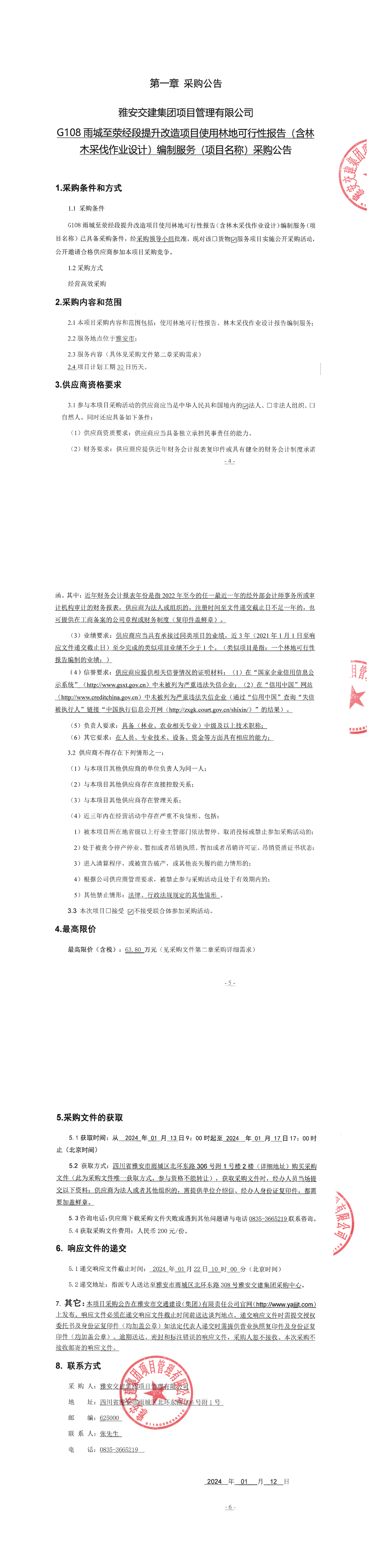 大红鹰dhy(中国)集团项目管理有限公司G108雨城至荥经段提升改造项目使用林地可行性报告(含林木采伐作业设计)编制服务(项目名称)采购公告