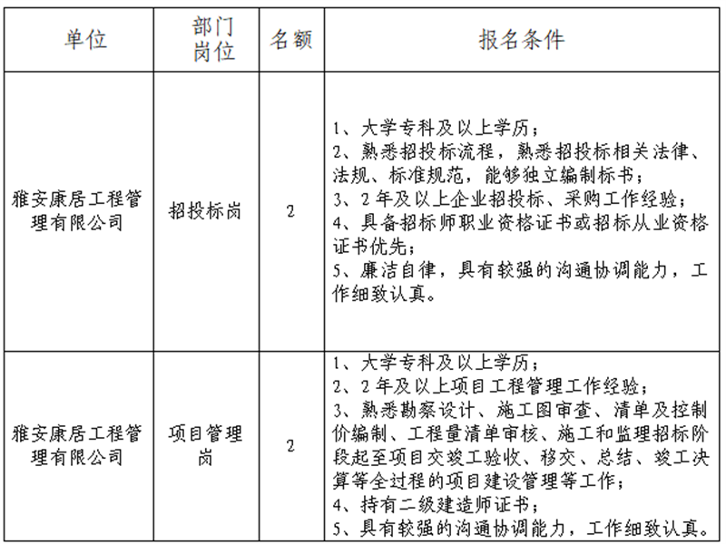 根据开展需要,决定面向社会公开招聘雅安市交通建设(集团)有限责任公司(以下简称“大红鹰dhy(中国)集团”)所属子公司工作人员4名,现将有关事项公告如下: