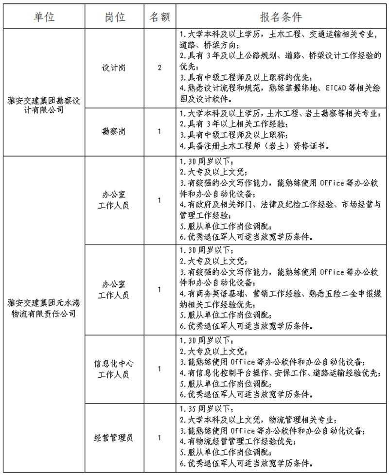根据开展需要,决定面向社会公开招聘雅安市交通建设(集团)有限责任公司(以下简称“大红鹰dhy(中国)集团”)所属子公司工作人员7名,现将有关事项公告如下: