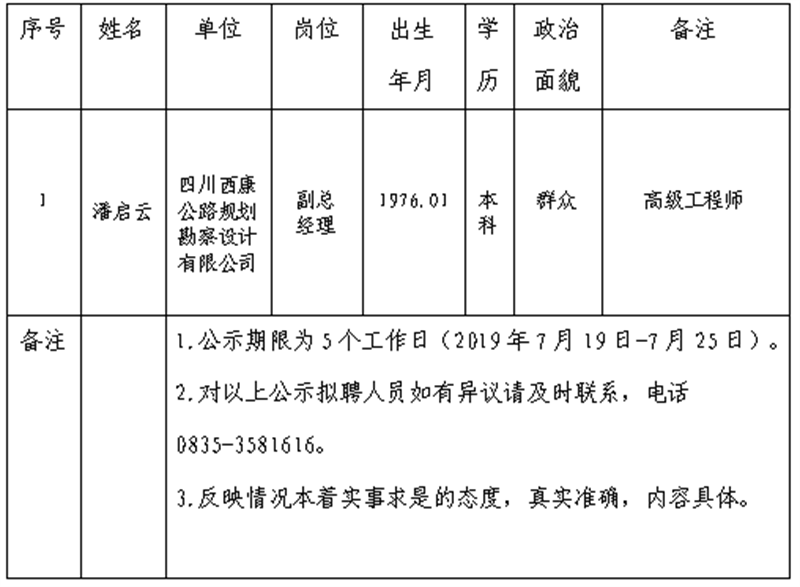 根据集团公司《部门及子公司领导人员选拔任用管理办法(试行)》,经研究,对以下拟聘用人员予以公示:
