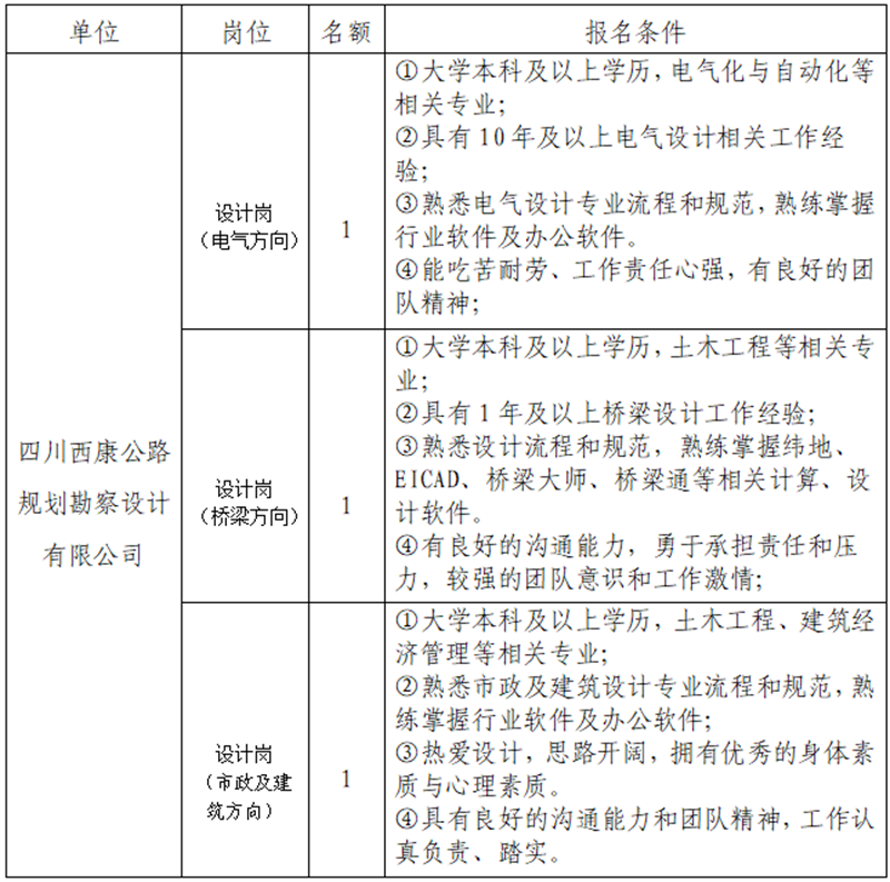 根据开展需要,决定面向社会公开招聘雅安市交通建设(集团)有限责任公司(以下简称“大红鹰dhy(中国)集团”)所属子公司专业技术人才3名,现将有关事项公告如下: