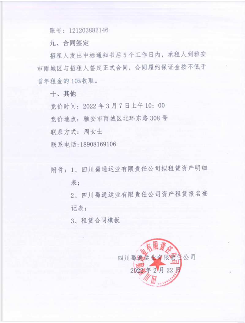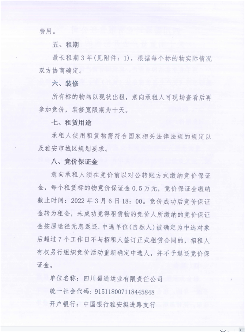 蜀通公司关于闲置资产挂网招租的公告