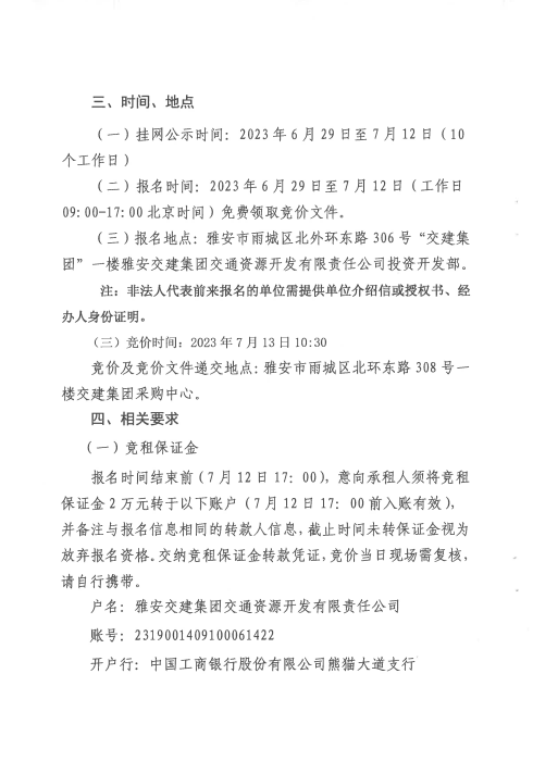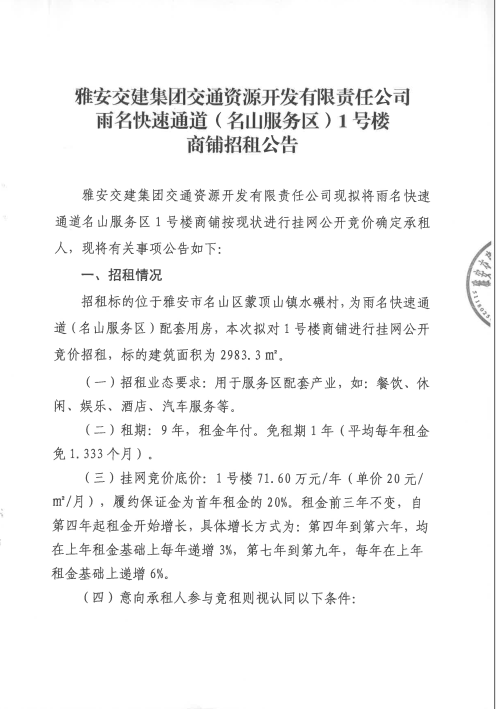 大红鹰dhy(中国)集团交通资源开发有限责任公司雨名快速通道名山服务区1号楼招租公告附件