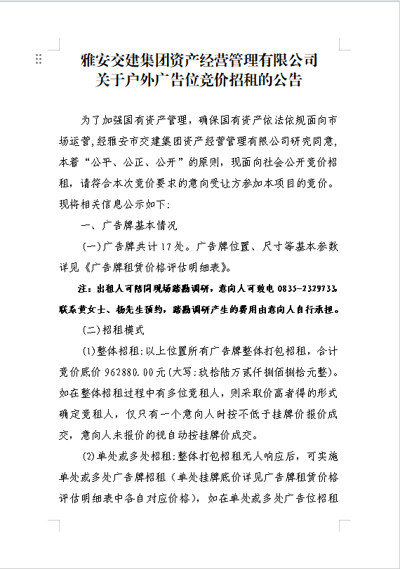 大红鹰dhy(中国)集团资产经营管理有限公司关于户外广告位竞价招租的公告附件