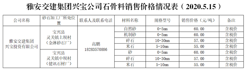 兴宝投资有限公司。兴宝公司是宝兴县人民政府指定宝兴县开展投资有限责任公司与雅安市交通建设(集团)有限责任公司共同组建的合资公司。现在,公司与两家企业确定了代加工合作关系:一是宝兴县健迅石材厂;二是宝兴县金淋砂石有限公司;预计年生产能力约200万吨。生产厂区距雨城区中心城区约55公里。