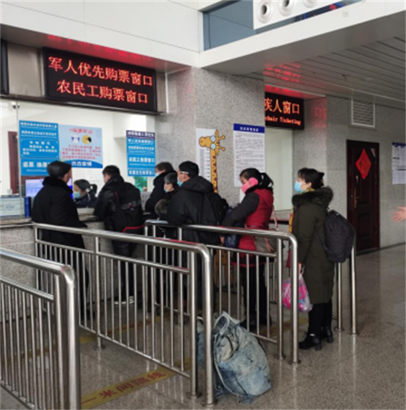 二是设立专门购票窗口。设立专门的农民工购票窗口,安排车站工作人员在售票窗口引导和帮助农民工朋友使用“微信购票”、“自助售票机购票”、“电子客票”等便捷绿色功能购票乘车。