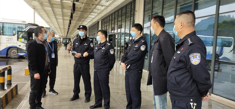 余熙高一行实地察看了客运站安全管理制度、车辆例检、安保系统、安保人员及装备、反恐演练、消防设施设备、安保及疫情防控措施等,详细询问听取了相关情况汇报,对雅安汽车客运站安全保卫工作给予充分肯定。