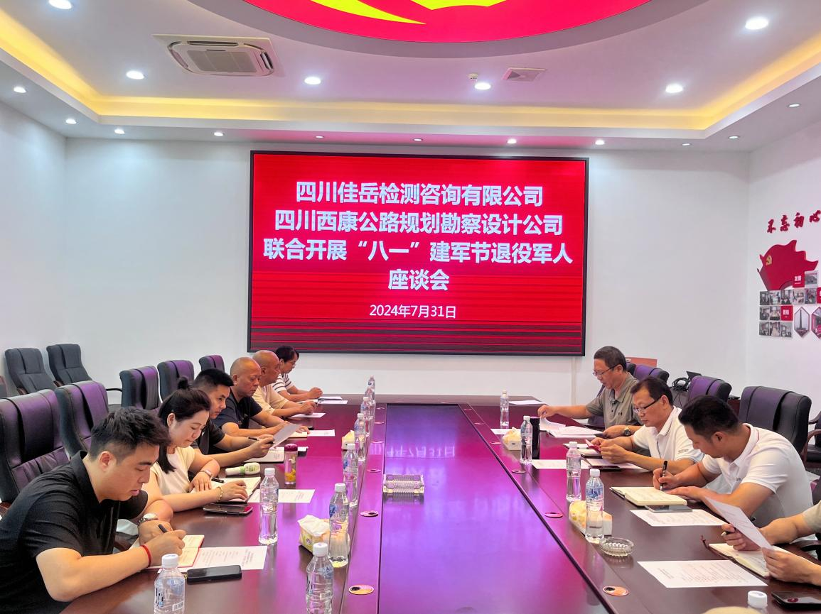 为庆祝中国人民解放军建军97周年,深刻弘扬拥军优属的光荣传统,进一步加深公司对退役军人的深切关怀与崇高尊重,2024年7月31日上午,交建集团佳岳公司与交建集团设计公司联合召开“八一”建军节退役军人座谈会。