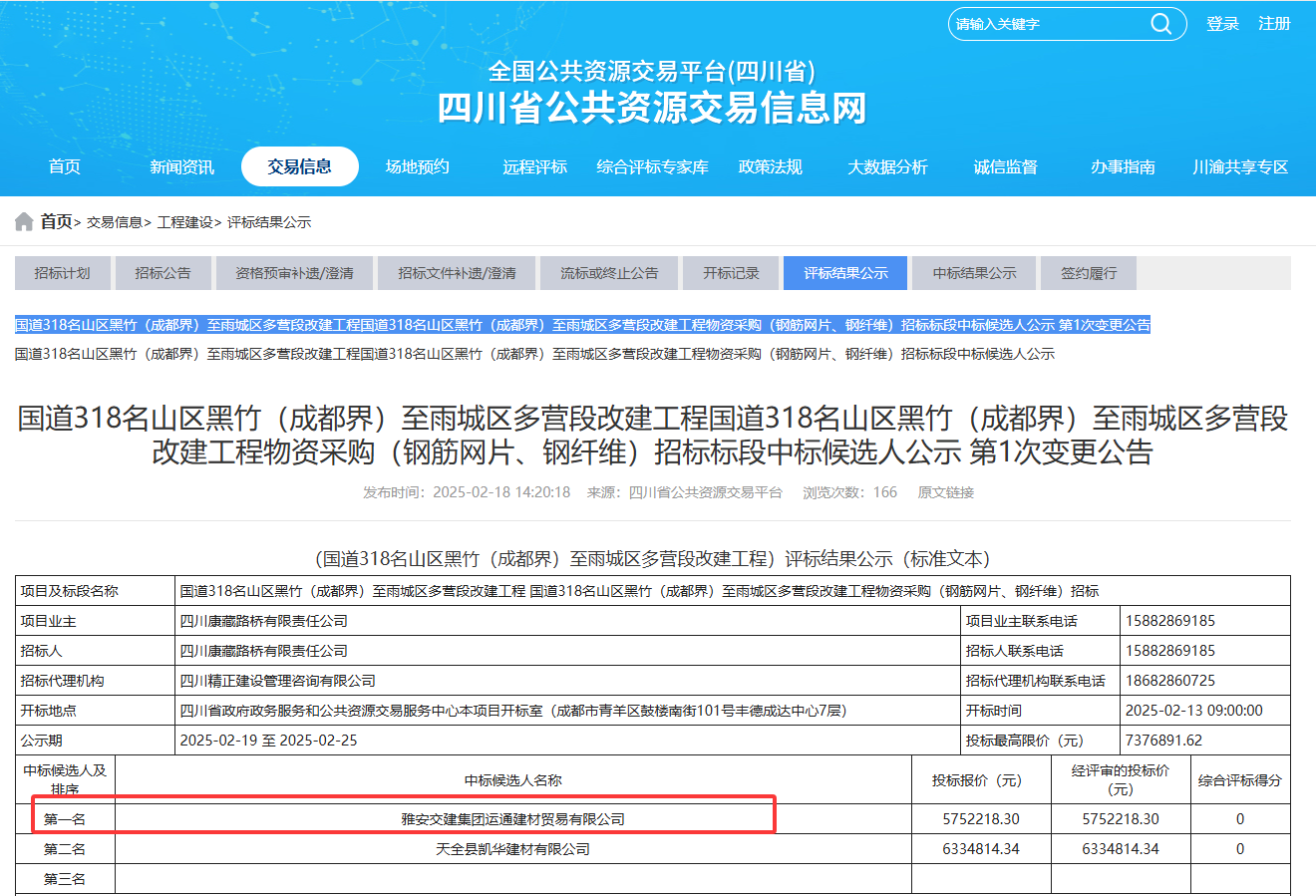 本次中标的国道318改建工程钢筋网片、钢纤维物资采购项目和高标号砂石料物资采购项目均为大量级采购,囊括了318项目的一、二、三标段。其中钢筋网片、钢纤维采购总量达1500吨,高标号砂石料采购总量达18万吨。