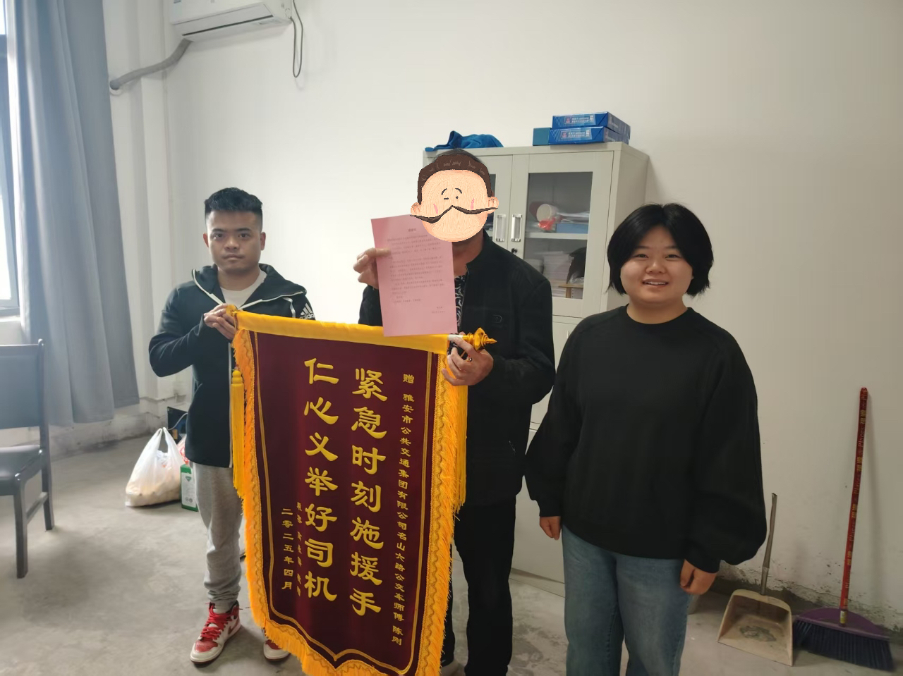 4月10日,市民高先生专程来到雅安公交集团,将一面写有“紧急时刻伸援手,仁心义举好司机”的锦旗送到公交公司工作人员手中,向危急关头及时伸出援手的6路公交车驾驶员陈刚师傅表示感谢。