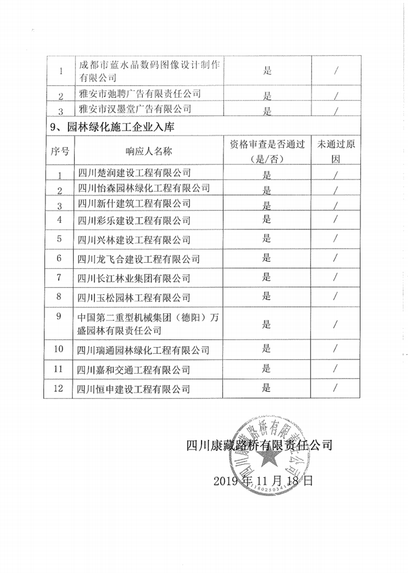 四川康藏路桥有限责任公司企业入库比选结果公示
