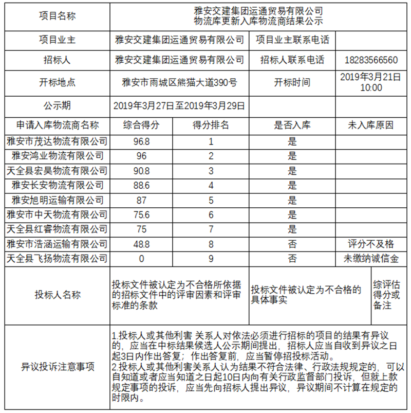 大红鹰dhy(中国)集团运通贸易有限公司物流库更新入库物流商结果公示
