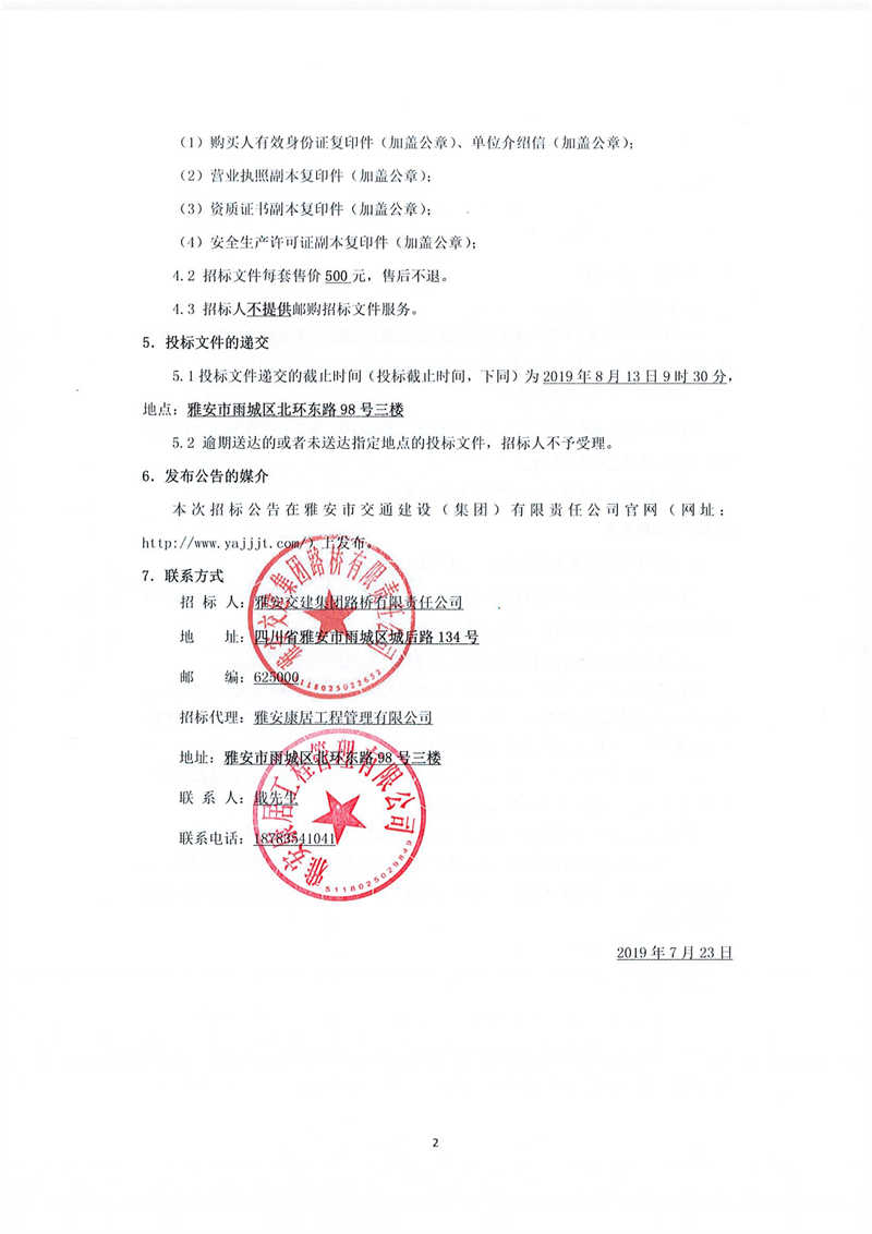 大红鹰dhy(中国)集团路桥有限责任公司国道351线硗碛至夹金山段路面改造工程波形护栏采购招标公告