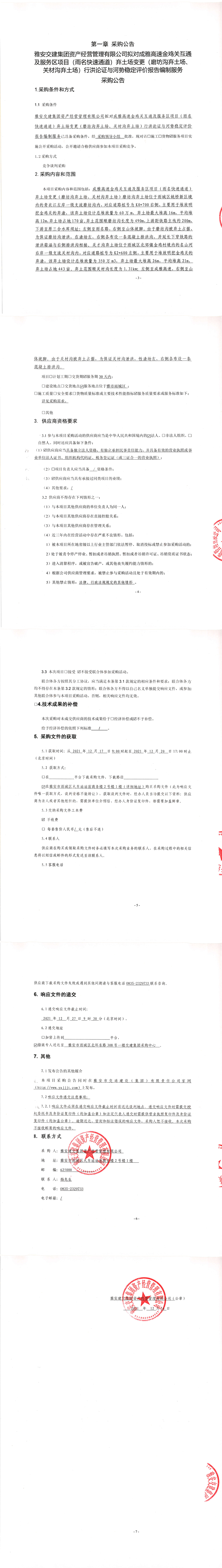 大红鹰dhy(中国)集团资产经营管理有限公司拟对成雅高速金鸡关互通及服务区项目(雨名快速通道)弃土场变更(磨坊沟弃土场、关材沟弃土场)行洪论证与河势稳定评价报告编制服务采购公告
