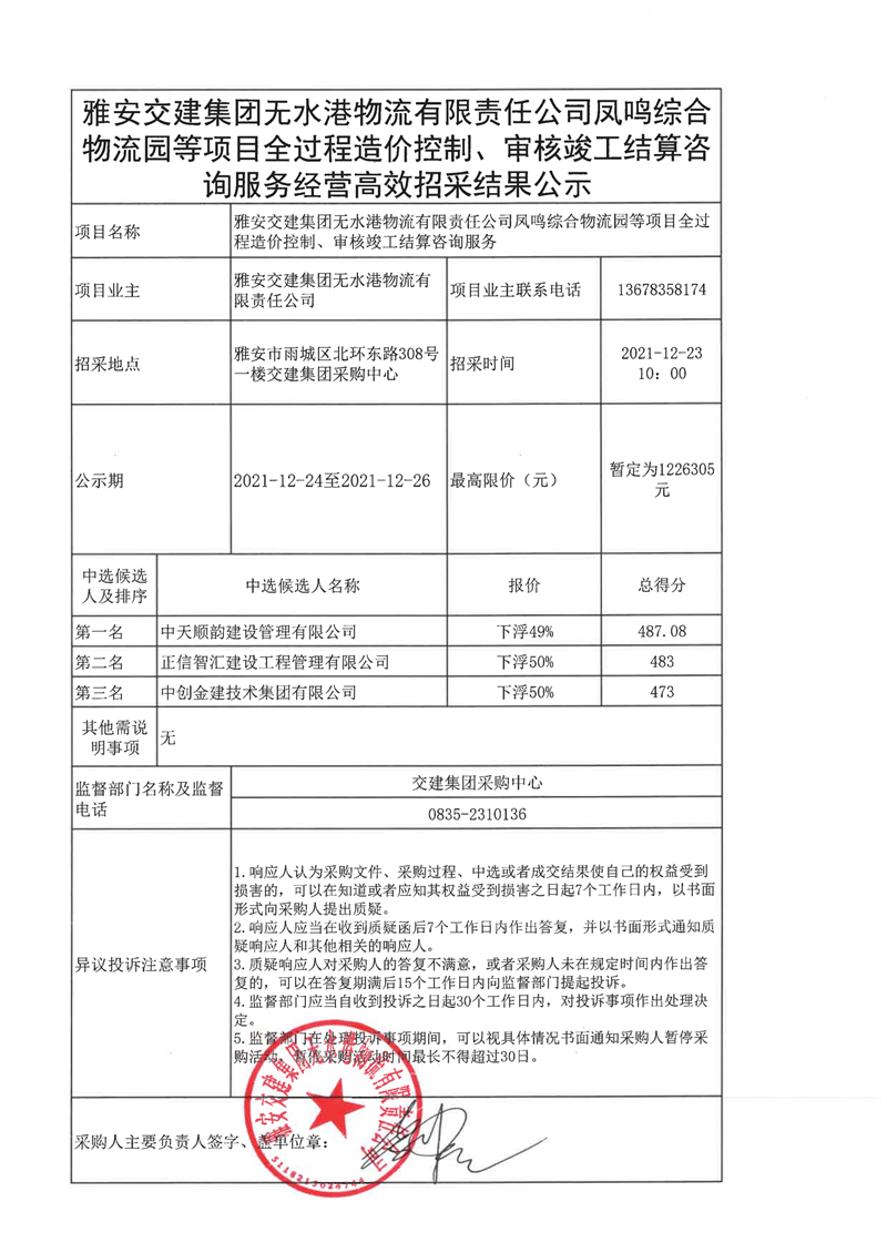 大红鹰dhy(中国)集团无水港物流有限责任公司凤鸣综合物流等项目全过程造价控制、审核竣工结算咨询服务经营高效招采结果公示