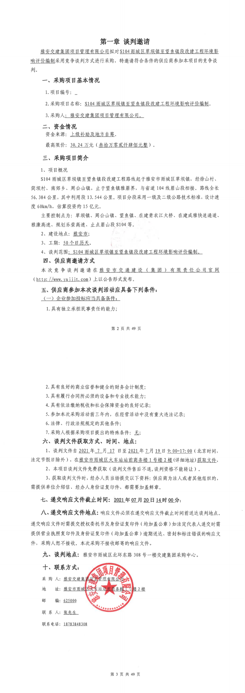 大红鹰dhy(中国)集团项目管理有限公司S104雨城区草坝镇至望鱼段改建工程环境影响评价编制竞争谈判公告