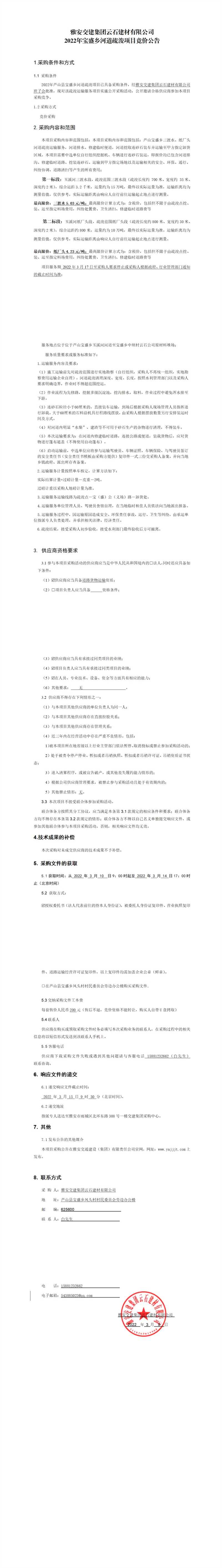大红鹰dhy(中国)集团云石建材有限公司2022年宝盛乡河道疏浚项目竞价公告