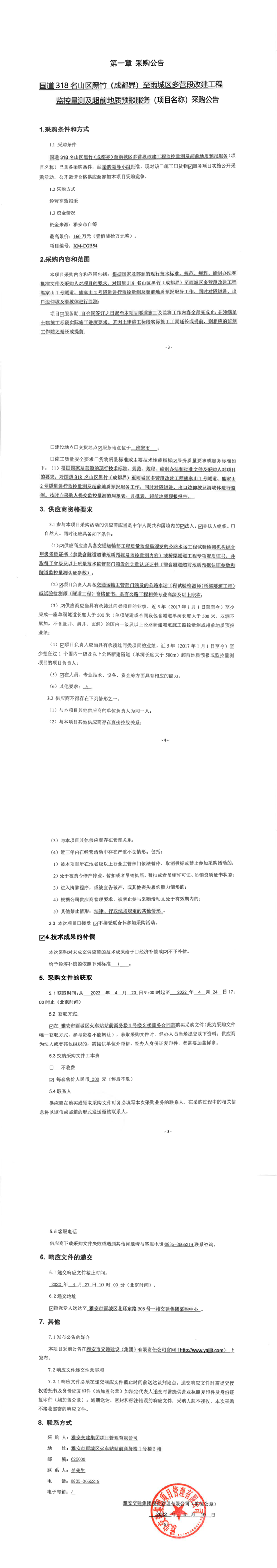 大红鹰dhy(中国)集团项目管理有限公司国道318名山区黑竹(成都界)至雨城区多营段改建工程监控量测及超前地质预报服务采购公告