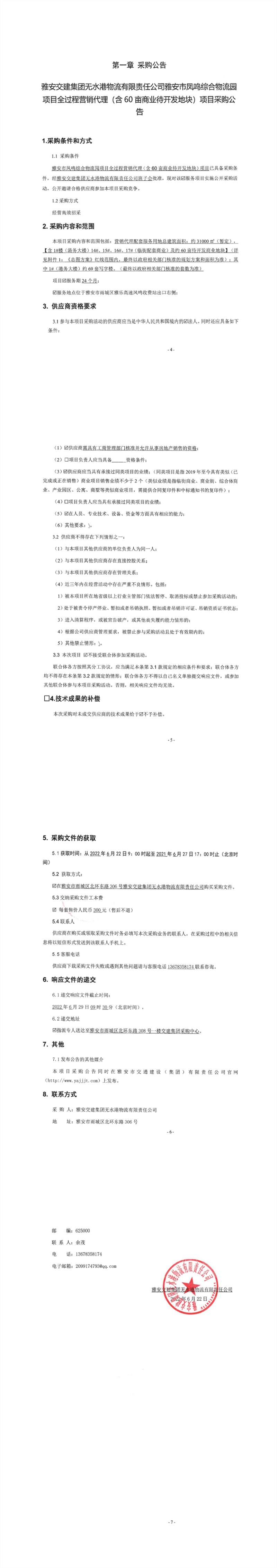 大红鹰dhy(中国)集团无水港物流有限责任公司雅安市凤鸣综合物流园项目全过程营销代理(含60亩商业待开发地块)项目采购公告