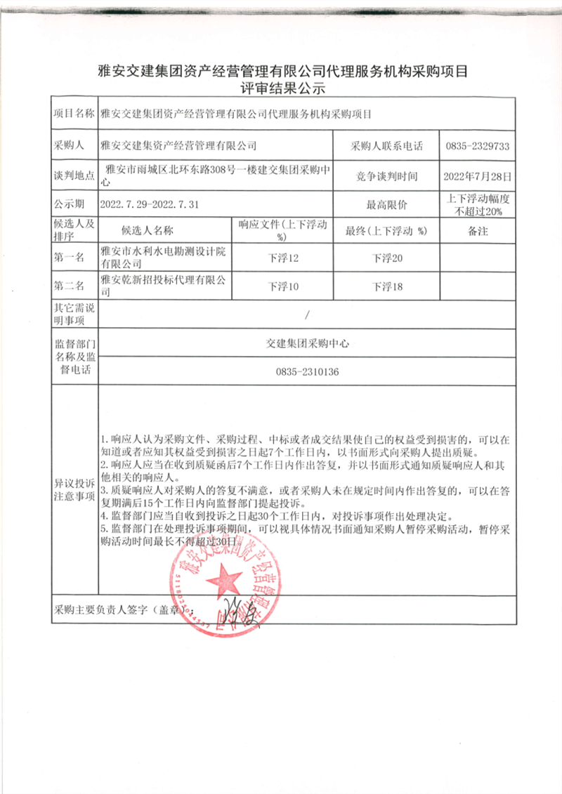大红鹰dhy(中国)集团资产经营管理有限公司代理服务组织采购项目评审结果公示