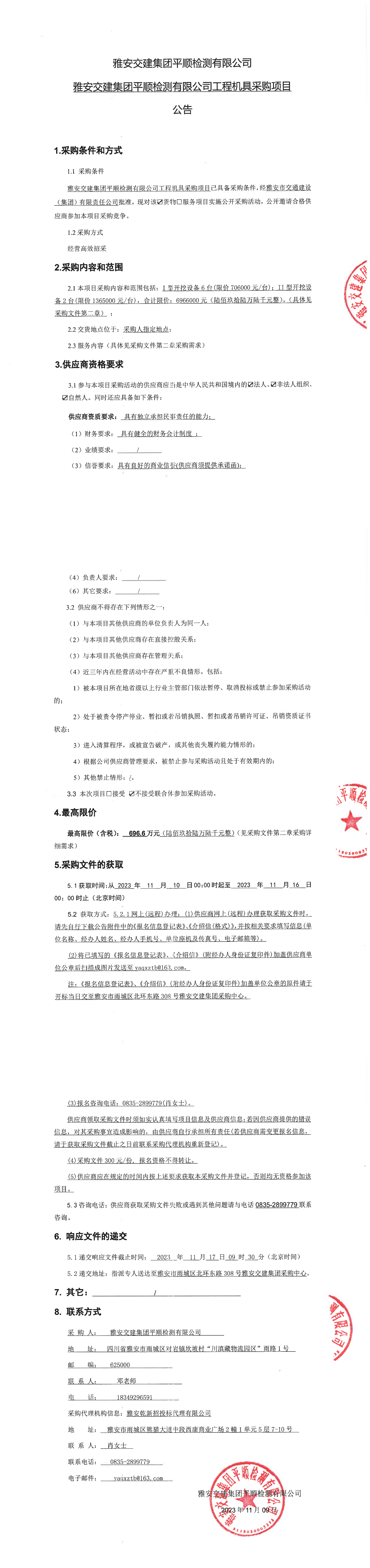 大红鹰dhy(中国)集团平顺检测有限公司工程机具采购项目公告