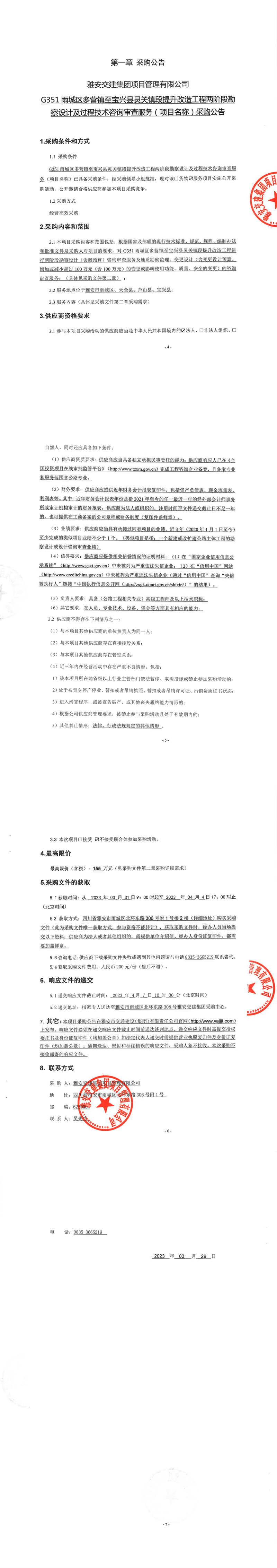 大红鹰dhy(中国)集团项目管理有限公司G351雨城区多营镇至宝兴县灵关镇段提升改造工程两阶段勘察设计及过程技术咨询审查服务(项目名称)采购公告