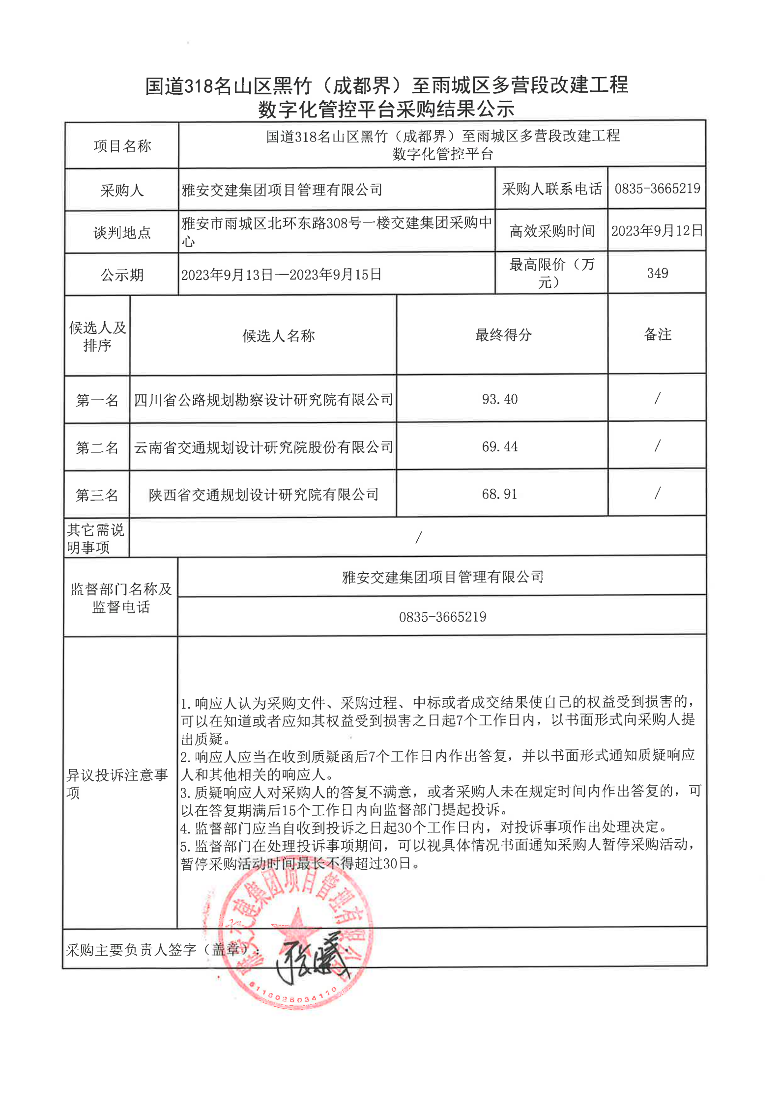 大红鹰dhy(中国)集团项目管理有限公司国道318名山区黑竹(成都界)至雨城区多营段改建工程数字化管控平台采购结果公示