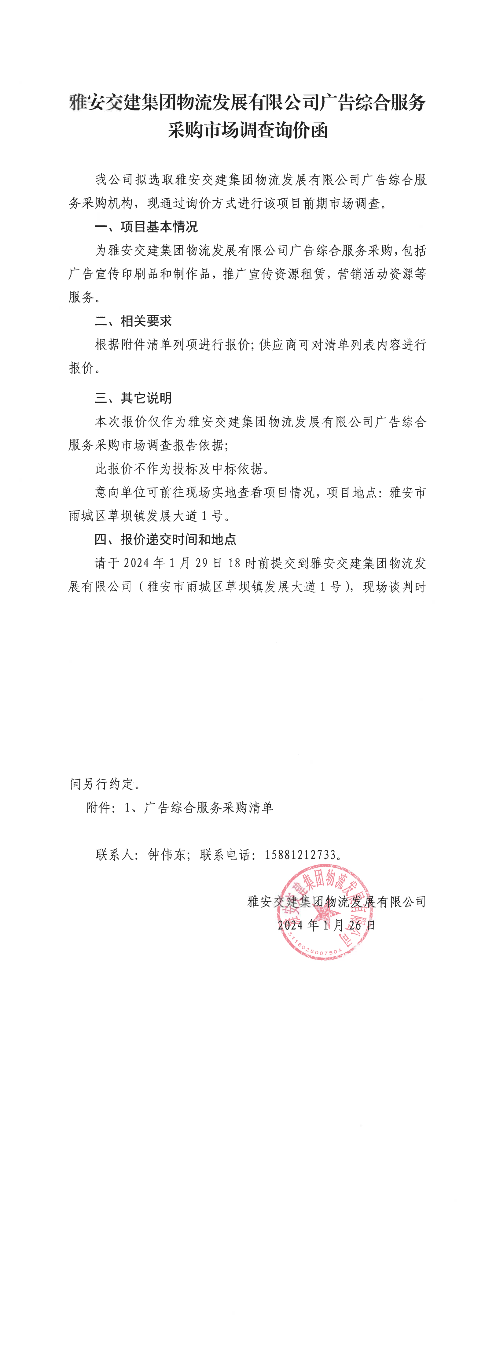 大红鹰dhy(中国)集团物流开展有限公司广告综合服务采购市场调查询价函