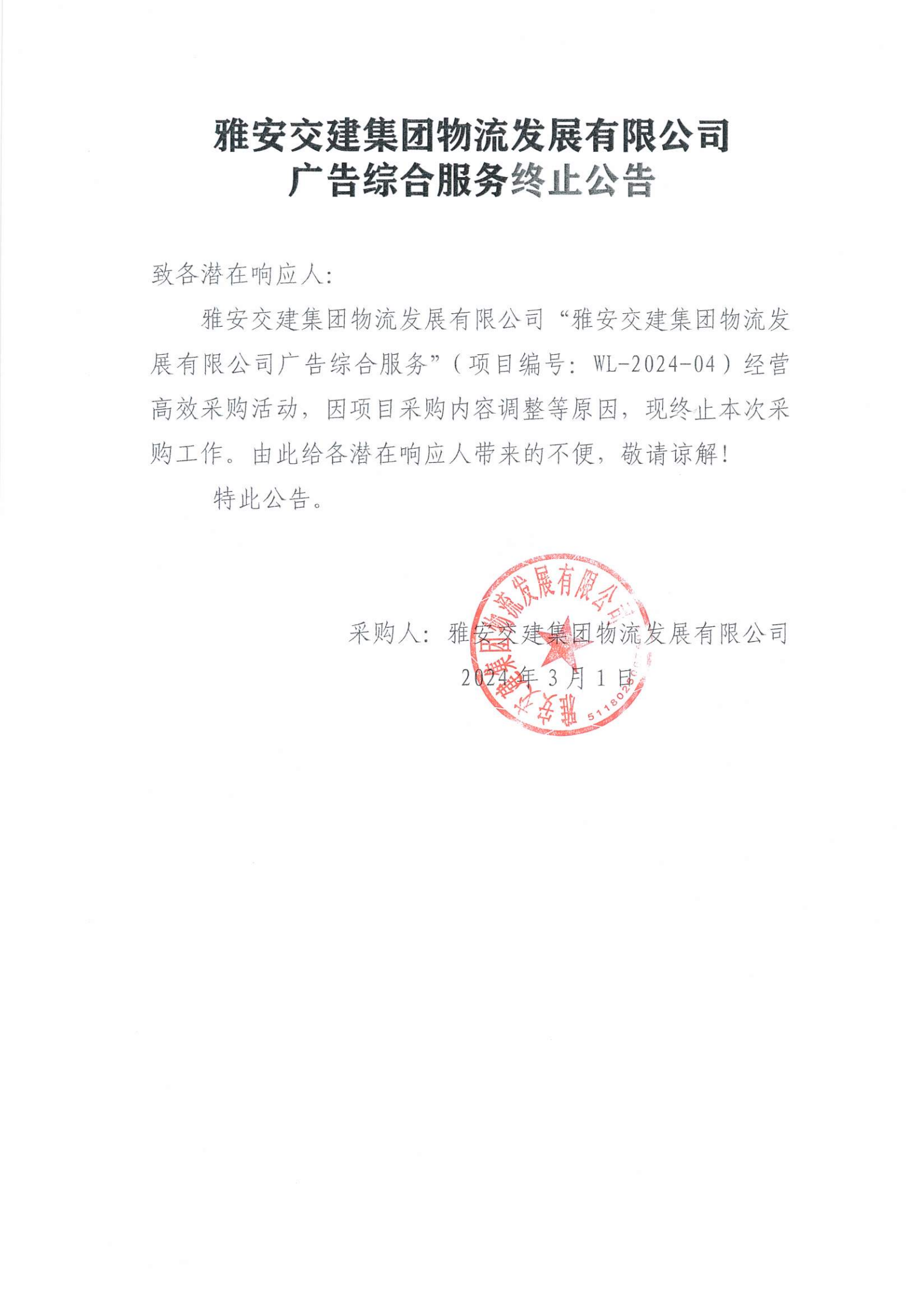 大红鹰dhy(中国)集团物流开展有限公司广告综合服务终止公告