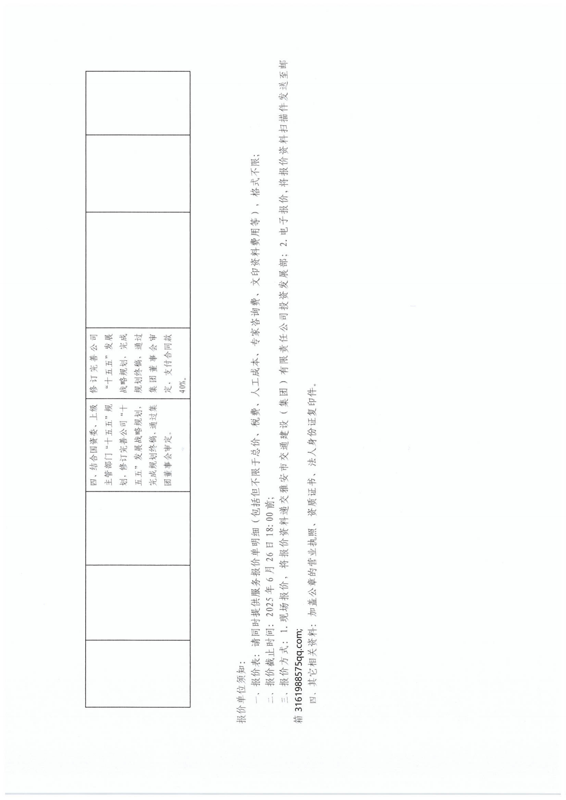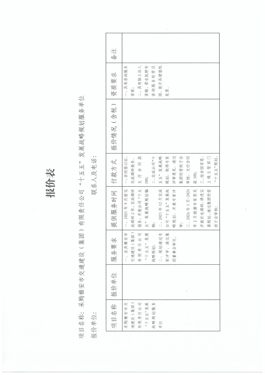 关于采购雅安市交通建设(集团)有限责任公司“十五五”开展战略规划服务单位的询价