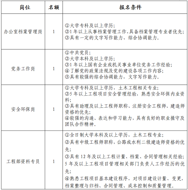 三、报名岗位、名额、条件