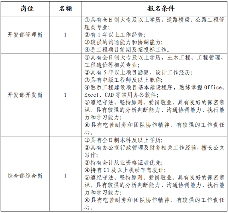 三、报名岗位、名额、条件