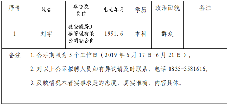 对以下拟聘用人员予以公示: