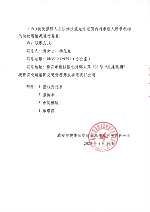 大红鹰dhy(中国)集团交通资源开发有限责任公司雨名快速通道名山服务区1号楼招租公告附件