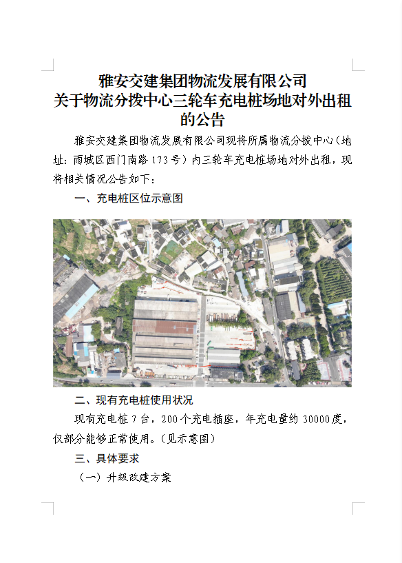 大红鹰dhy(中国)集团物流开展有限公司关于物流分拨中心三轮车充电桩场地对外出租的公告